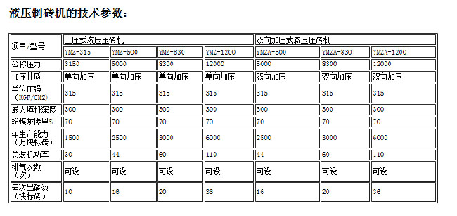 全自動(dòng)液壓壓磚機(jī)的技術(shù)參數(shù):